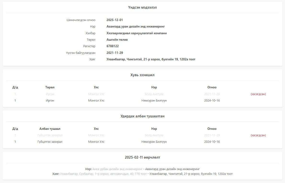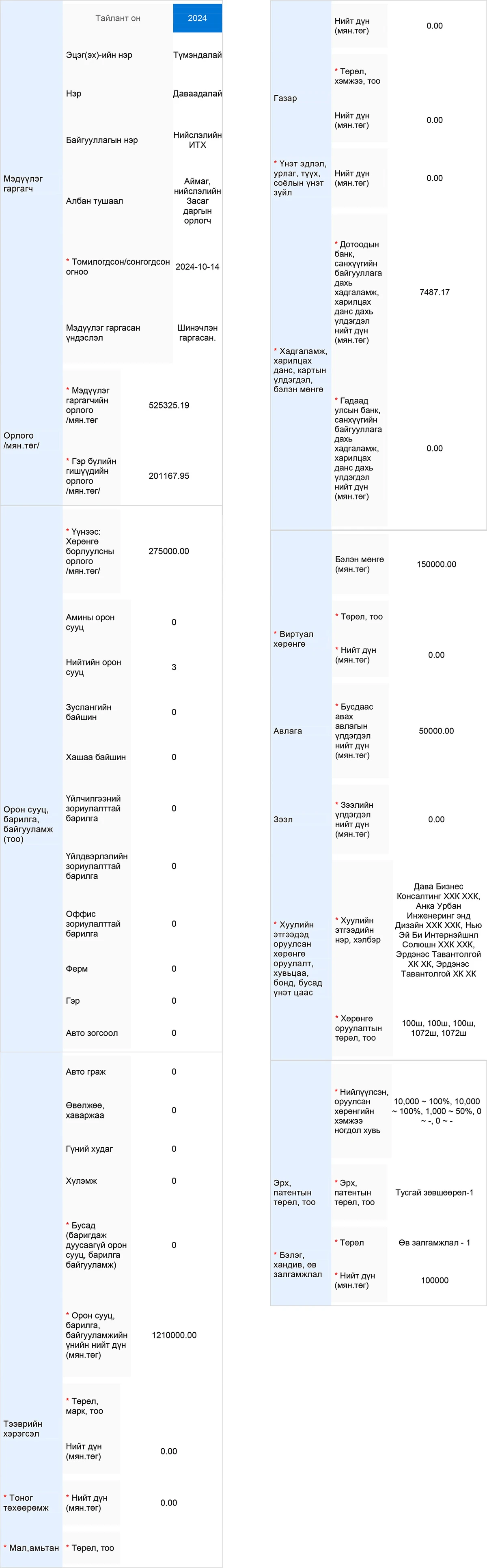 “Бодь”-ийн Д.Баясгалангийн нийслэлд тавьсан бэт гэгдэх Т.Даваадалай НИТХ-ын төлөөлөгчөөр сонгогдохдоо буюу 2024 оны ХОМ-тээ “Анка урбан инженеринг энд дизайн” ХХК-ийн хувьцаа эзэмшигч болохоо бичсэн байна.