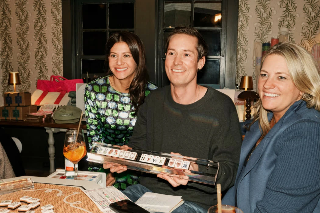 Зохиолч (голд нь) ба зүүн талд “Gold Coast Mahjong Club”-ын үүсгэн байгуулагчид болох Жэйми Далтон болон Эмили Браун (баруун талд) нар.