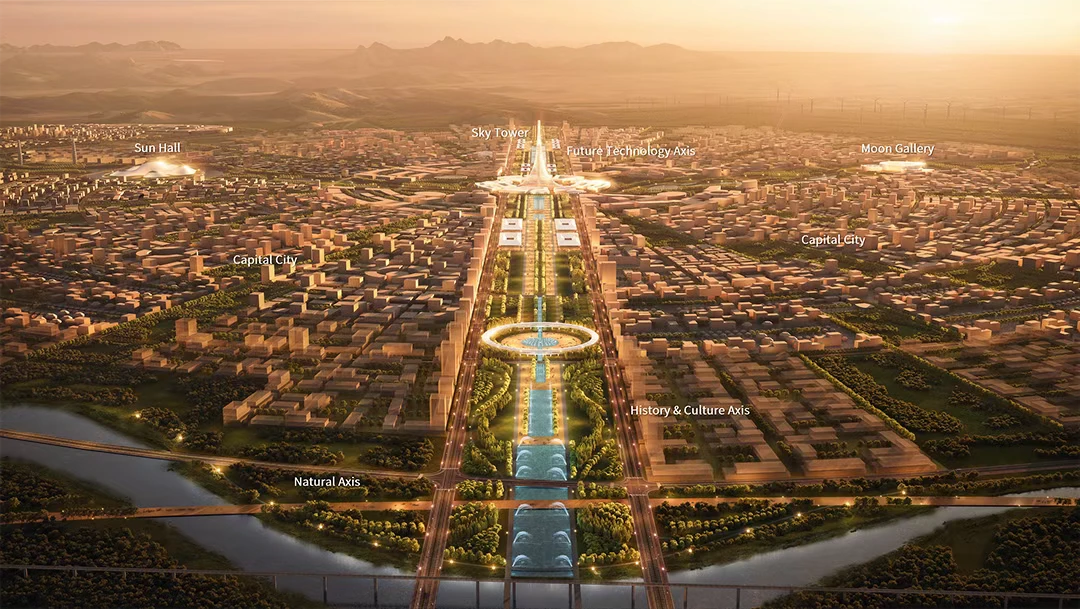方案规划,新城将被视为鄂尔浑河谷国家公园的延伸。设计者从草原古城的空间智慧中汲取灵感,通过轴线与城垣的现代转译,勾勒出独属于蒙古的都城意象。
