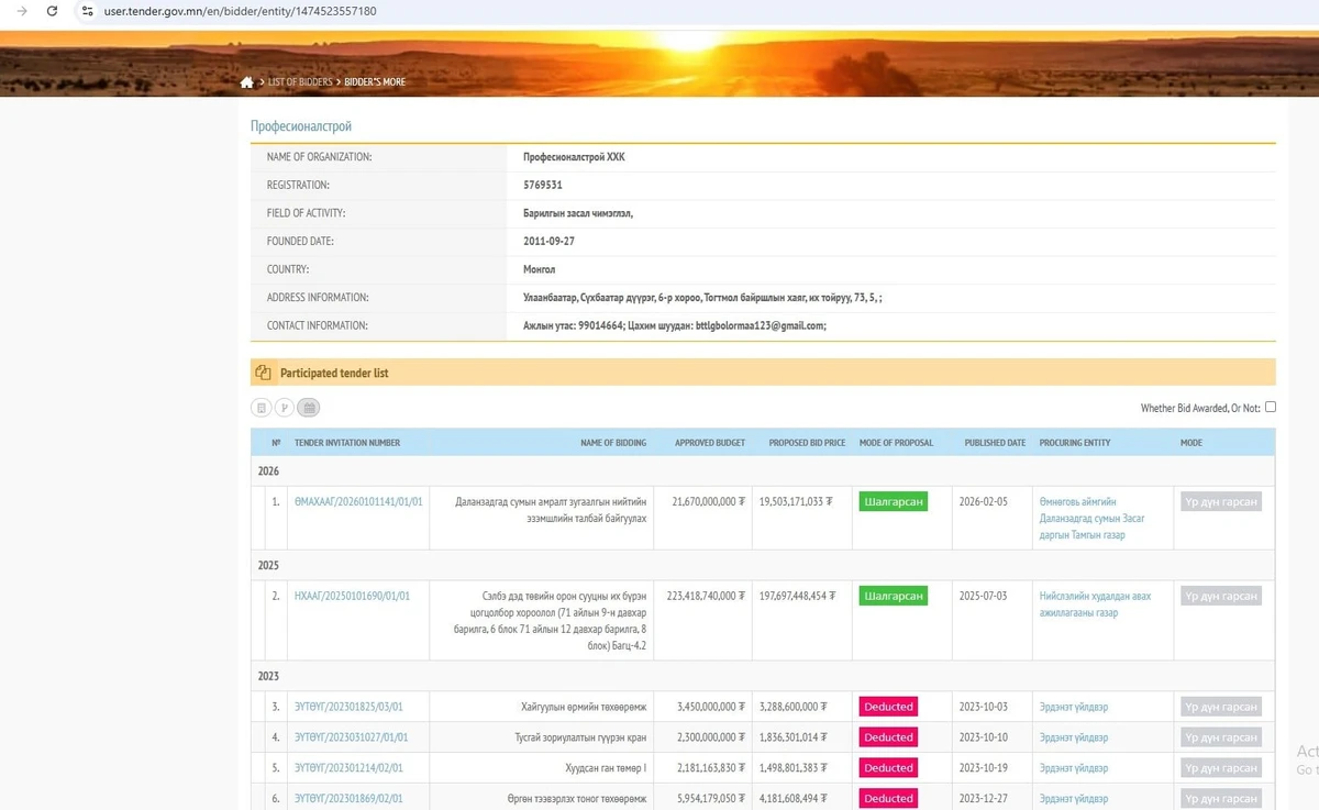 НИТХ-ын төлөөлөгч, Нийслэлийн хөрөнгө оруулалтын газрын ТУЗ-ийн гишүүн Б.Сэргэлэнбаатар, “Үнэн ба зөв” намын нарийн бичгийн дарга Ш.Мөнхсайхан нарын хамтран эзэмшдэг “Професионалстрой” ХХК нь 200 тэрбум төгрөгийн өртөг бүхий 71 айлын 9 давхар барилга 6 блок, 71 айлын 12 давхар барилга 8 блок барилгын тендер авсан нь баримтаар илэрсэн. Б.Сэргэлэнбаатар бол төсөв баталдаг, төсөл хэрэгжүүлдэг эрх мэдэлтэн.