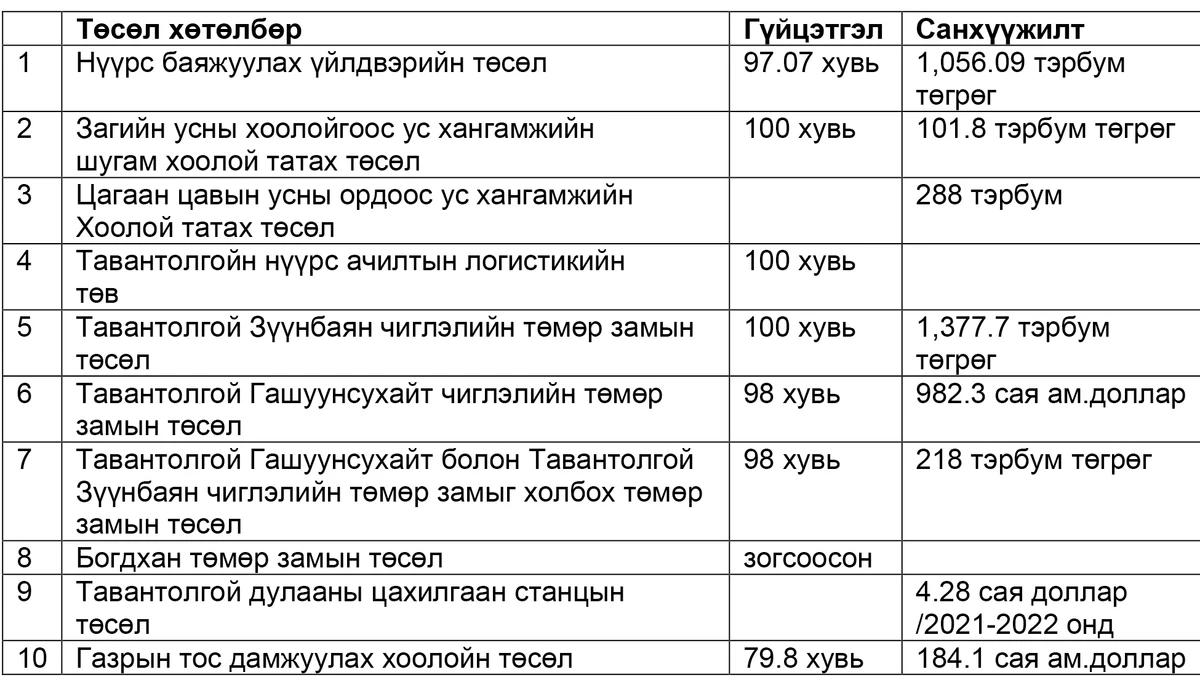 “Эрдэнэс Тавантолгой “ ХК-ийн бэлэн мөнгөөр санхүүжүүлсэн төслүүд