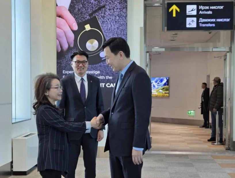 大呼拉尔议长N.乌查日拉由蒙古人民党书记B.普日布达格瓦和中华人民共和国驻蒙古国特命全权大使沈敏娟送行。