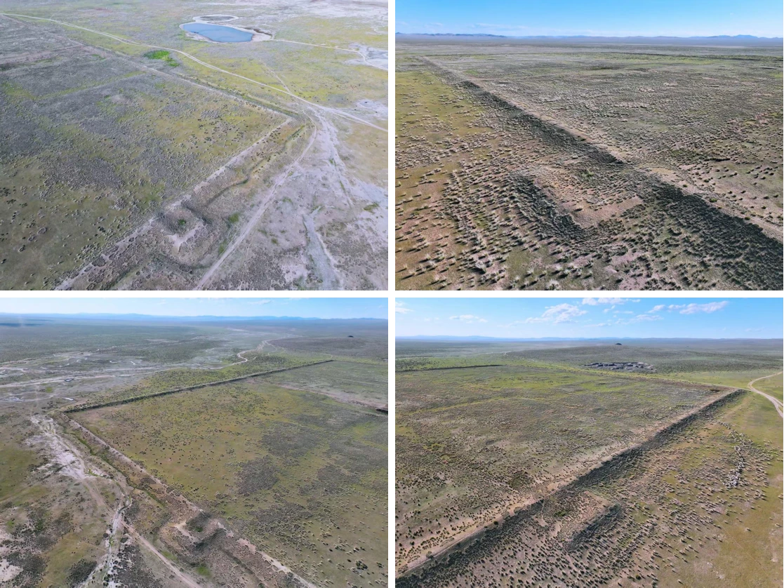 图5 青陶勒盖城址 南城 南城门遗迹(左上);南城 西城门遗迹(右上); 南城 东城门遗迹(左下);北城 东城门遗迹(右下)