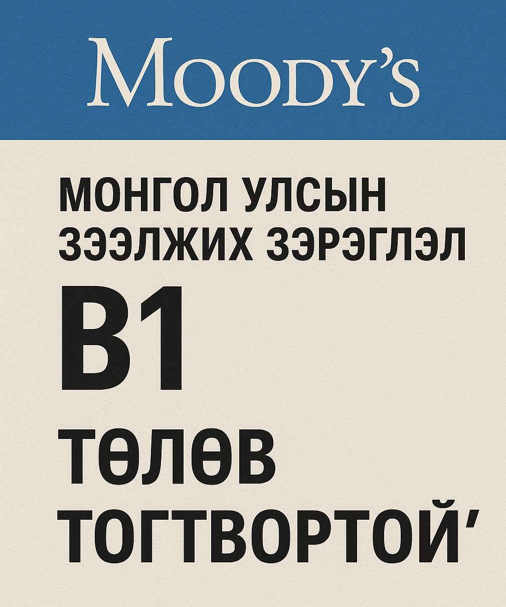 Монгол Улсын зээлжих зэрэглэлийг В2 түвшнээс В1 түвшин рүү ахиулж, “Тогтвортой” төлөвт байгааг Moody’s агентлаг өчигдөр /2025.10.16/ зарлалаа.