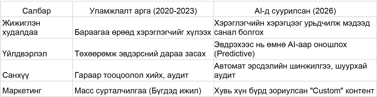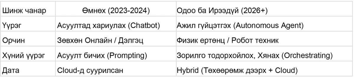 "Хуучин AI" vs "Шинэ AI (2026+)"