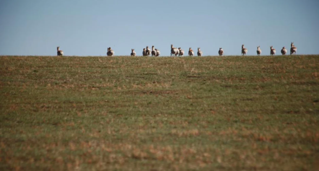 内蒙古草原上的大量野生蒙原羚。图源:中新网。