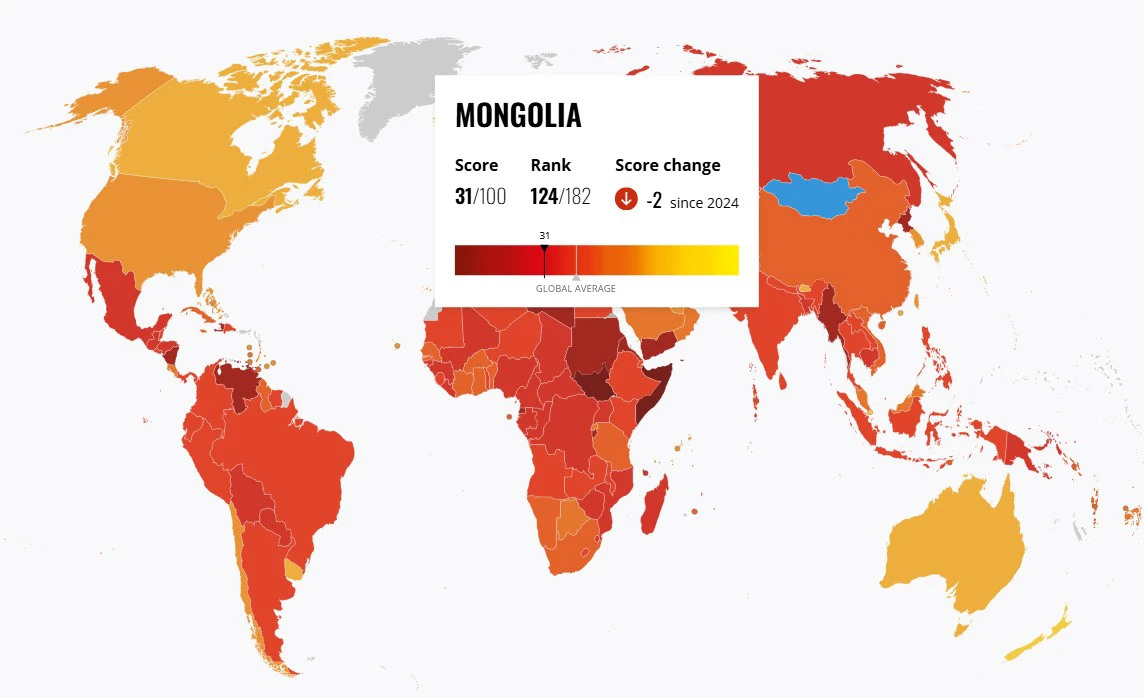 Авлигын төсөөллийн индексээр (АТИ) Монгол Улс 31 оноогоор 182 орноос 124-т бичигджээ. Ийнхүү засгийн эрхийг 10 жил барьж буй МАН-ын үед Монгол Улс авлигын индексээр арагшилсаар явна. Үүнд ажлаа хийж чадахгүй байгаа АТГ буруутай юм.