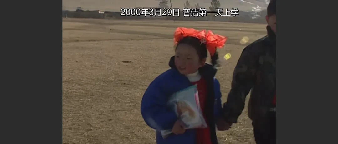她的小脸洗得干干净净,戴着红色头花,穿蓝色外套、黑裤子和小红皮鞋。她左手牵着亲戚家的哥哥,右手抱着新书,走进了贝扬查麦小学。