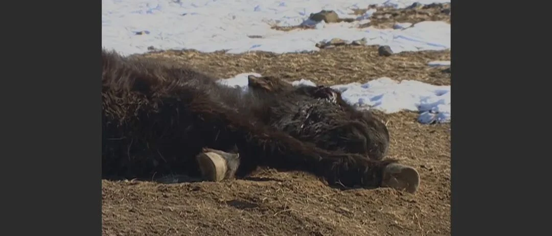 关野赴蒙古的3月中旬,当地“暴雪”肆虐,高原地区受灾严重。雪白的草原上,牛羊饿得瘦骨嶙峋,地上没有足以过冬的牧草,食物不足,很多牲畜都接连丧命。