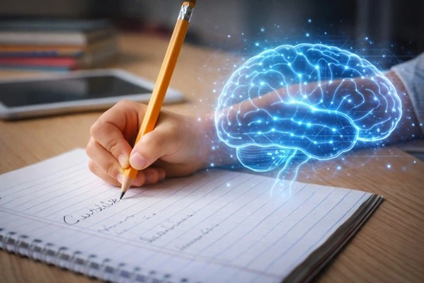 Гараараа бичих үед тархины хэд хэдэн систем ажилладаг байна. Бичих үед тархи ажиллаж эхэлдэг, яг машины хөдөлгүүр асч байгаа шиг, хүн бичихийн тулд хязгааргүй орон зайд сэтгэдэг, ой санамжаа эргэн сэргээдэг, бичих үгээ тархиндаа боловсруулдаг байна. Харин бичгийн машин дээр юм уу, компьютер дээр бичихэд тархинд ижил процесс явагддаг ч тархинд үзүүлэх нөлөө нь бага. Учир нь, гараар бичиж байгаа үсэг бүр тархины хөдөлгүүрийг дээд чинээнд тултал ажиллуулдаг байна. Ингэснээр тархи идэвхтэй байна гэсэн үг.
